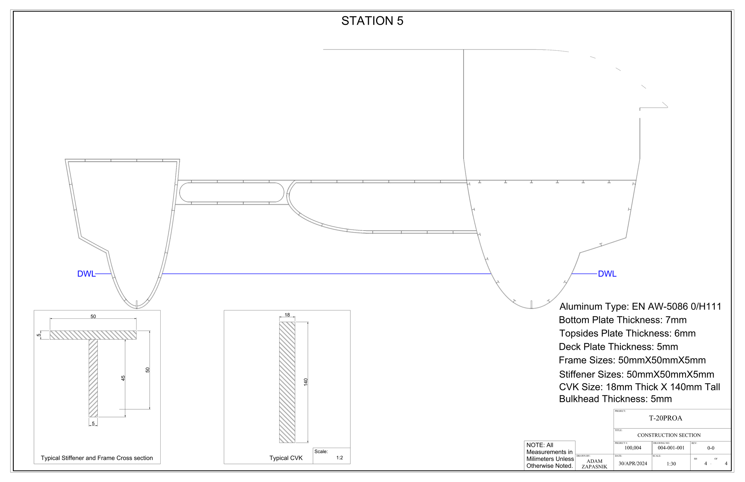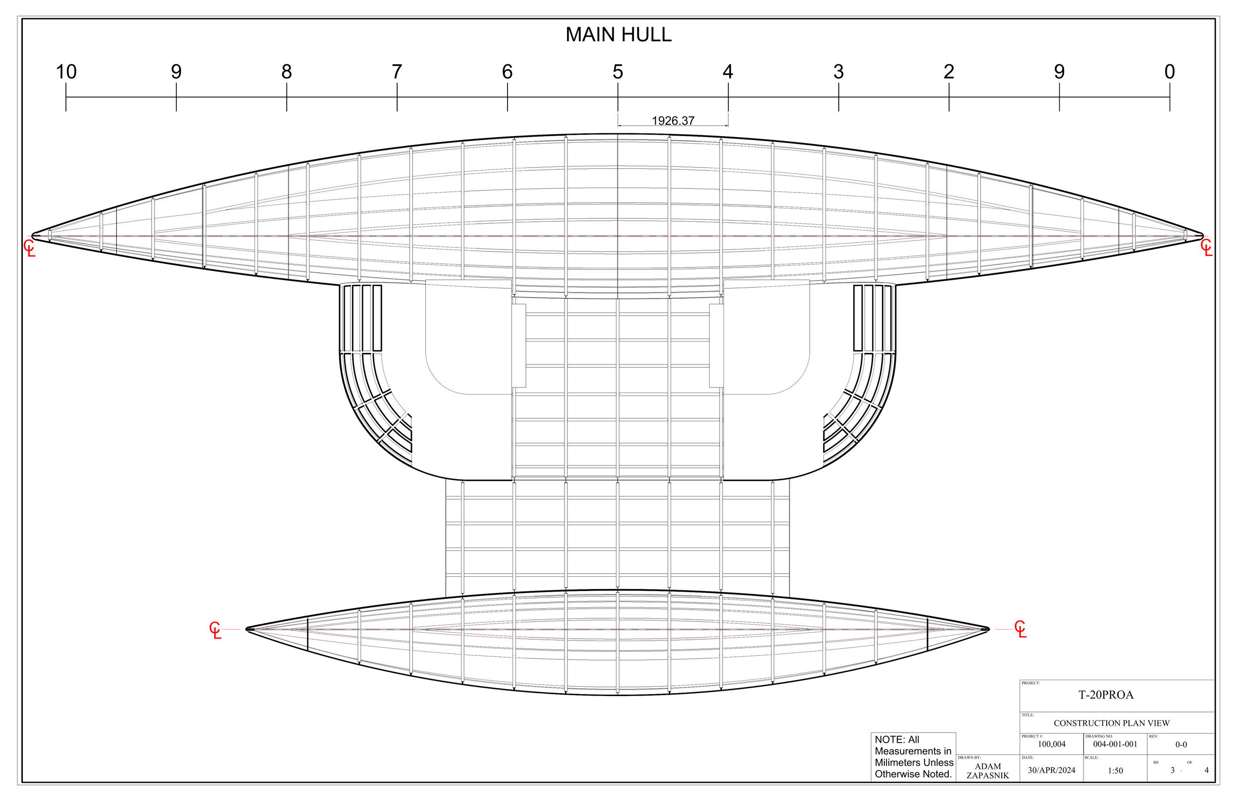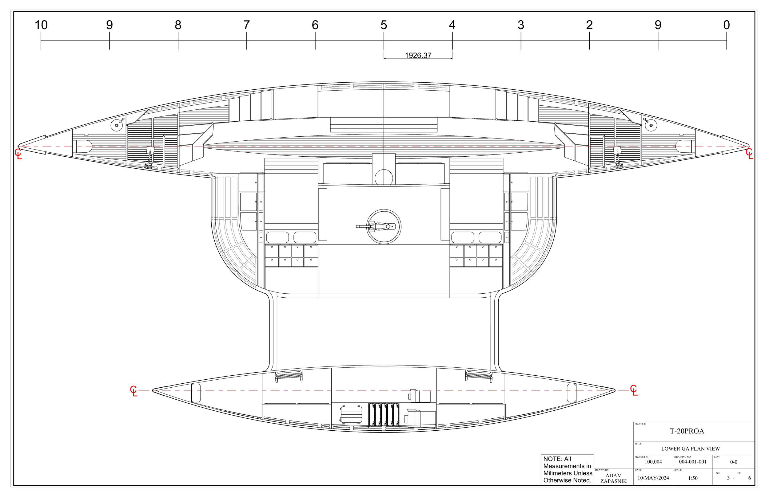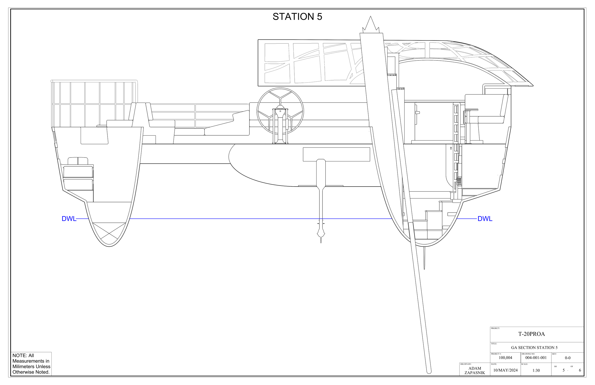This was my final Project at The Landing School. For this project, I didn't really have any restrictions; I chose the proa because I knew it would be a major challenge and would afford me the opportunity to grow a lot. The biggest challenge I faced was finding any information about proas on the internet; this proved to be very exhausting. The few details I did find on proas are based primarily on observation, mostly from sailors who have seen or sailed one. I set out to design my hull based on my current knowledge of hydrodynamics and hydrostatics. The second big challenge was finding space inside the narrow hulls for my dream of a lavish interior space. After spending weeks working out the kinks in the hull shape through many long nights doing CFD resistance runs and making minor tweaks to my hull shape, I finally was able to start working out the interior details and machinery layout. This proa also conforms to ISO design category A for aluminum scantlings. It has a large (125 square meter) Solar Sail attached to a carbon fiber unstayed AERORIG. I worked out the bending moments and inertia. A large 10 LiPo battery bank, a 9Kw generator, and three HVAC units. This proa has one 40KW electric engine, can sleep 8, has two heads with attached shower/saunas, and a ton of open space.