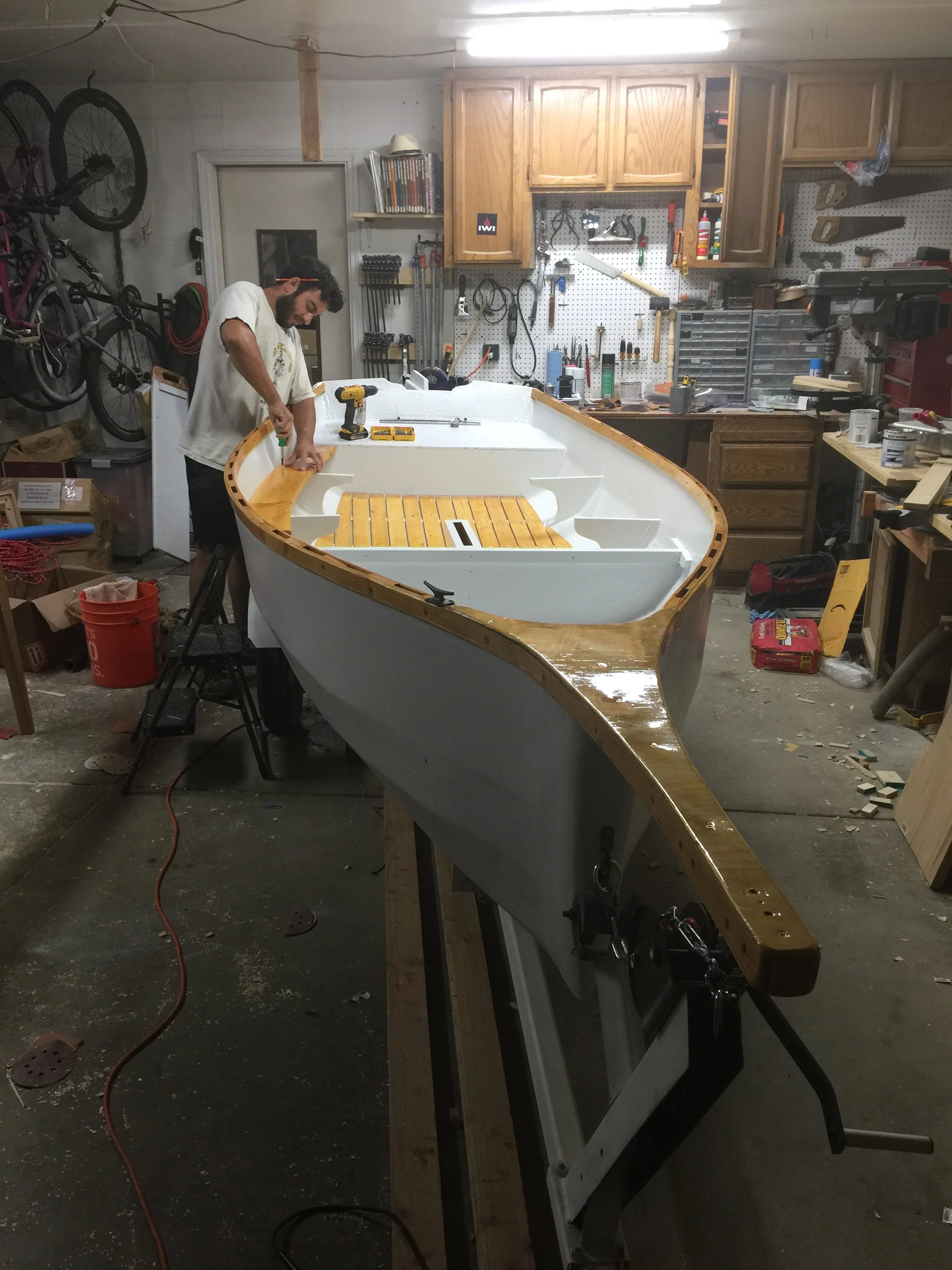 Here, I attached some runners to avoid gouges while beaching and a skeg to help the boat track better.