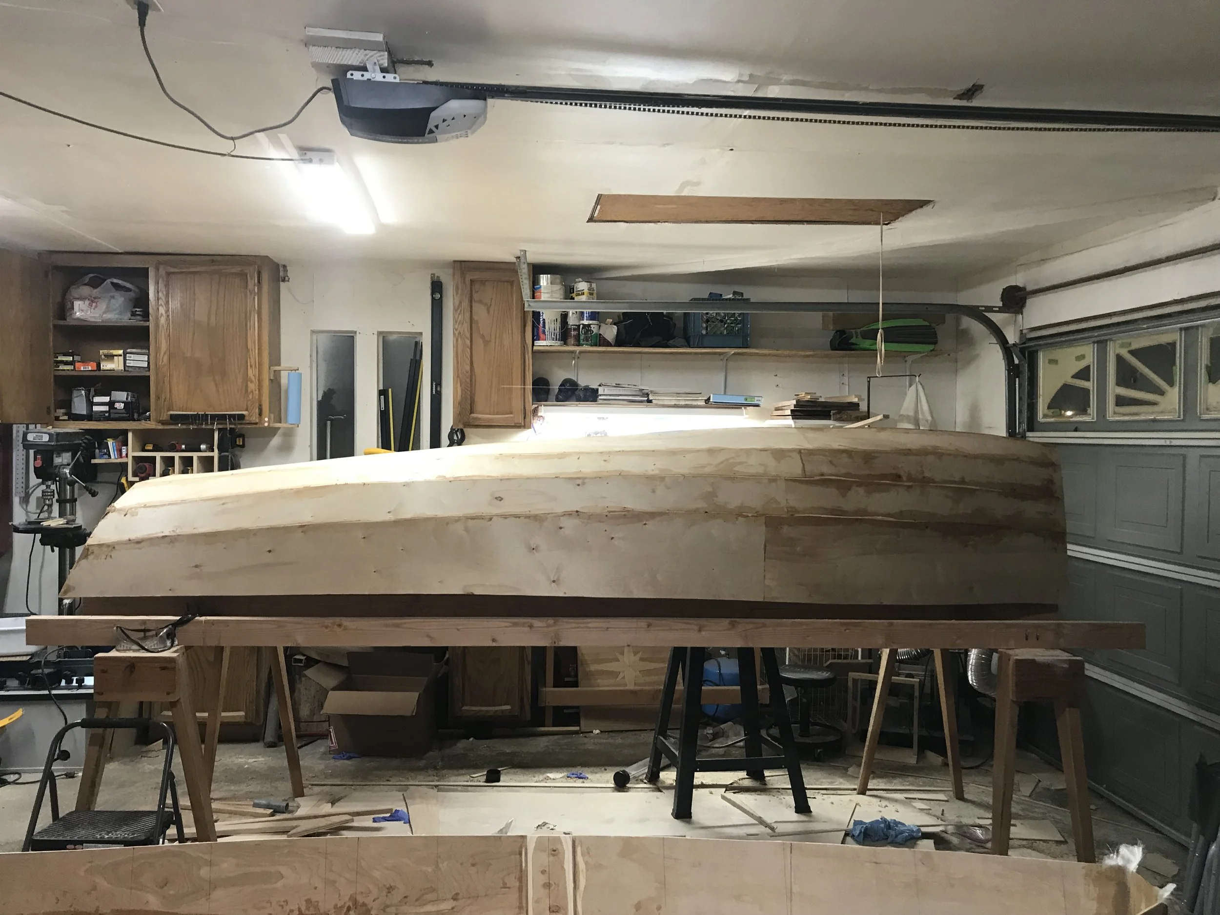 This was my first boat build. I do not recall the designer or the type of boat. I ordered the plans off of a website but had no idea what I was doing. Other than being a competent carpenter, I had zero knowledge of boat building. Still, I managed to complete this build in about four weekends in my free time. I do remember this being an incredibly fun build project, and I couldn’t wait to get to work every Saturday.